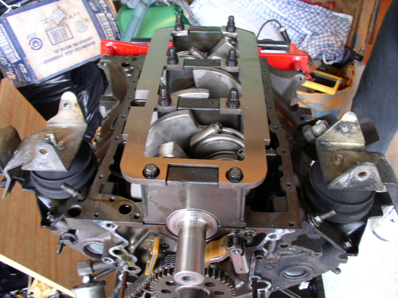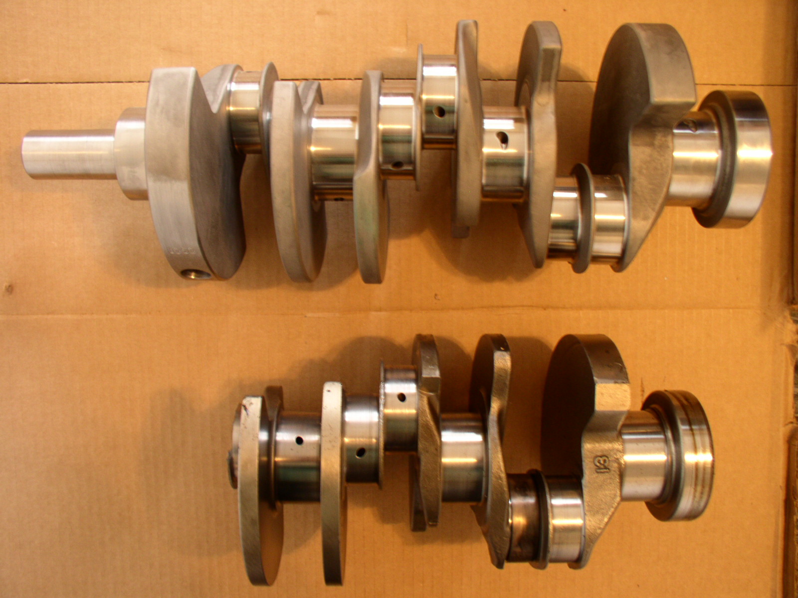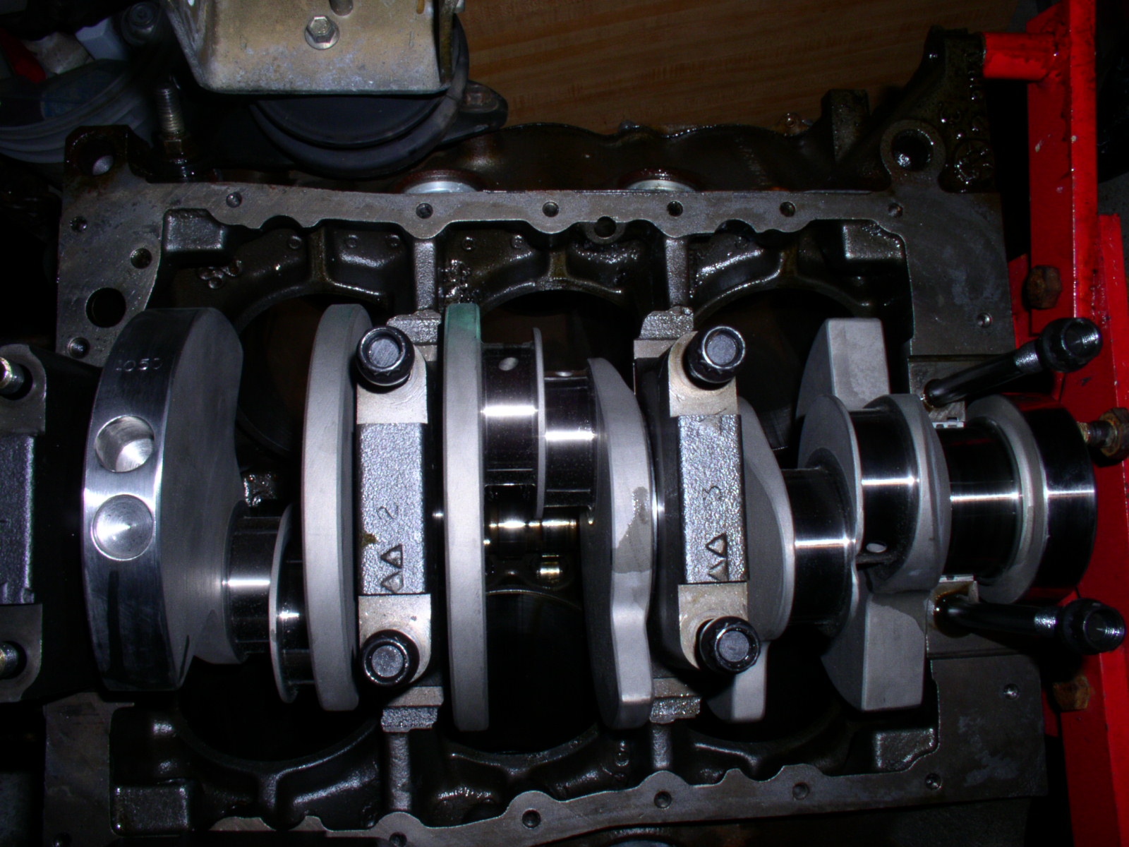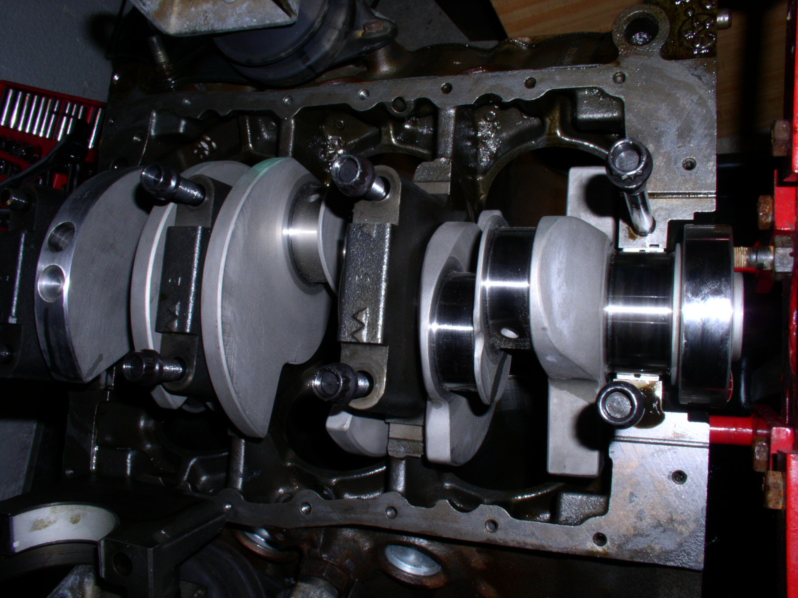 Pictures of the engine assembly with the new crankshaft and other various broken parts