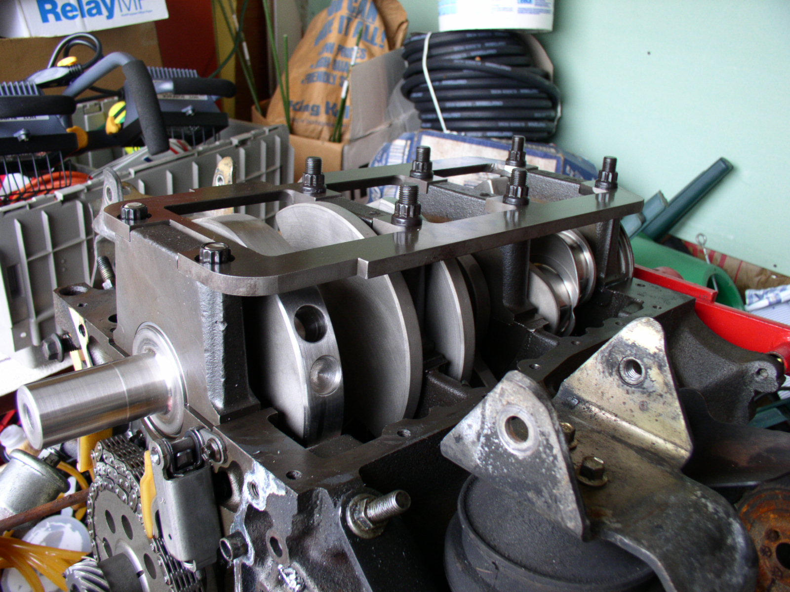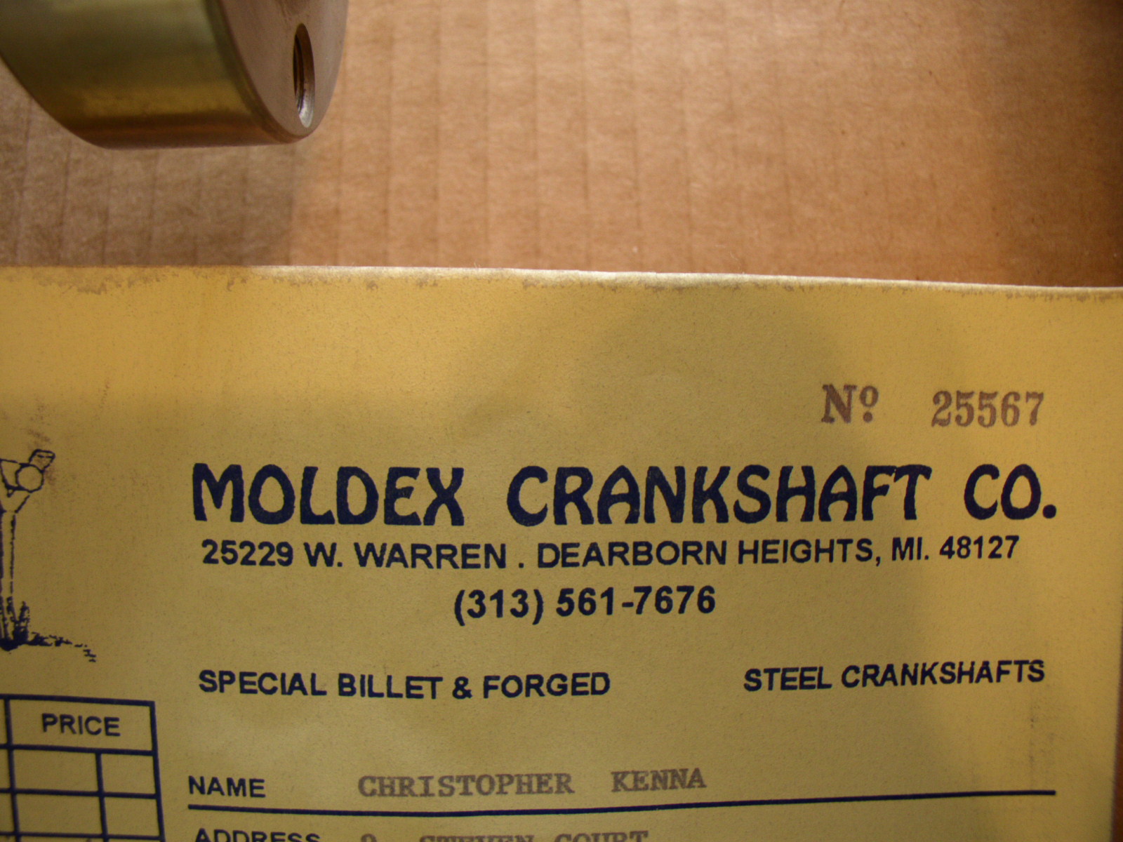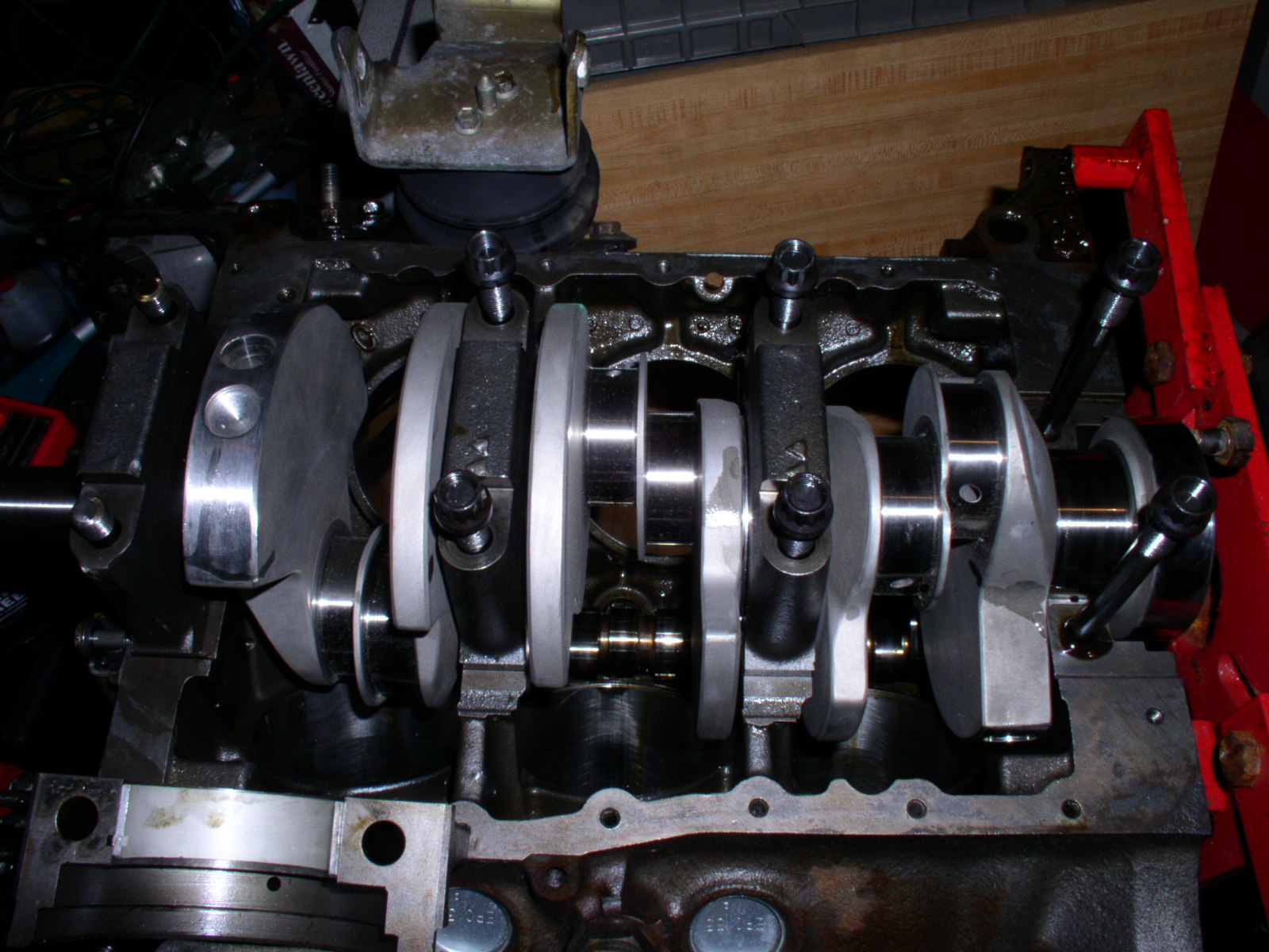 Pictures of the engine assembly with the new crankshaft and other various broken parts