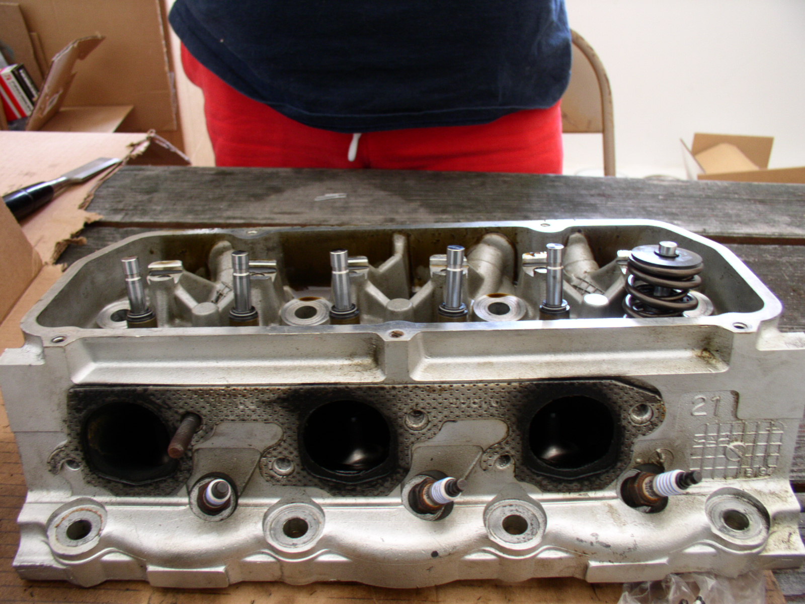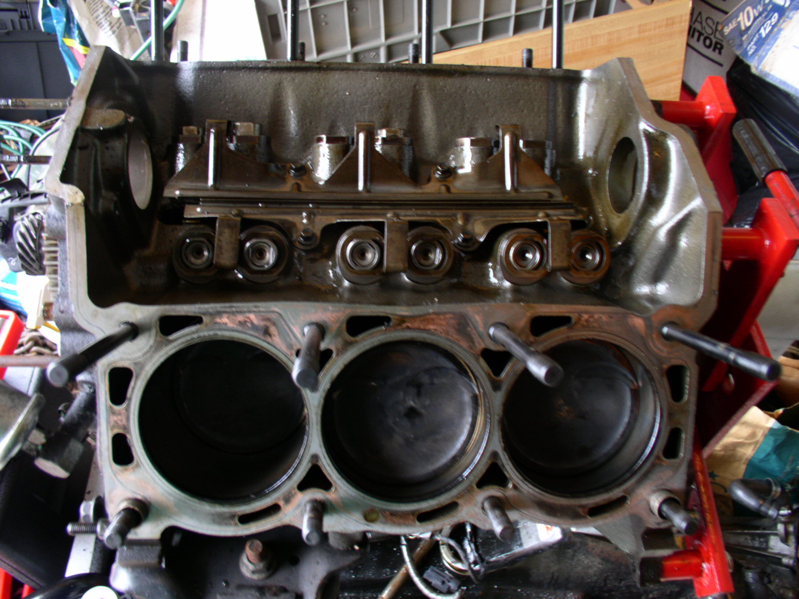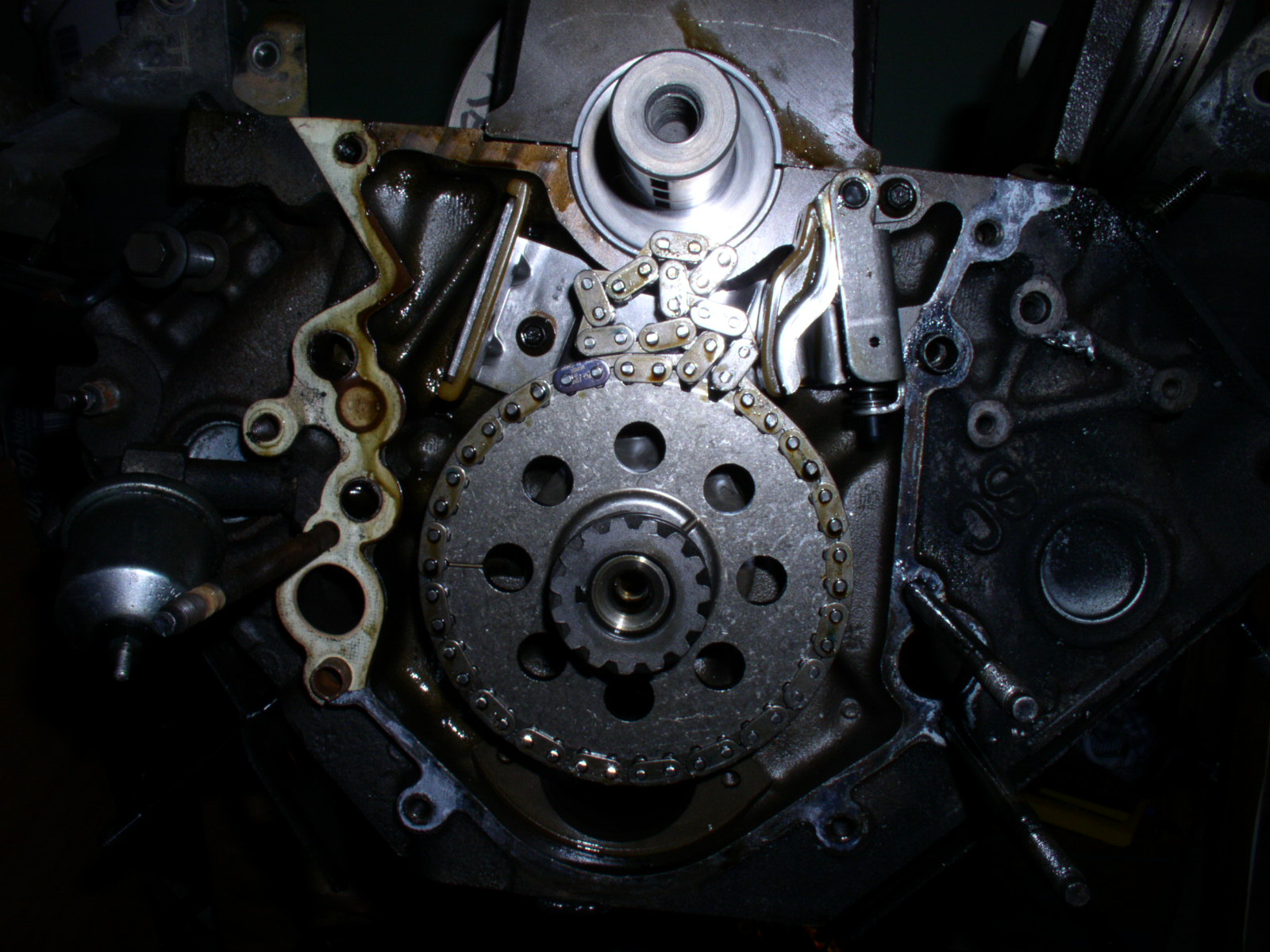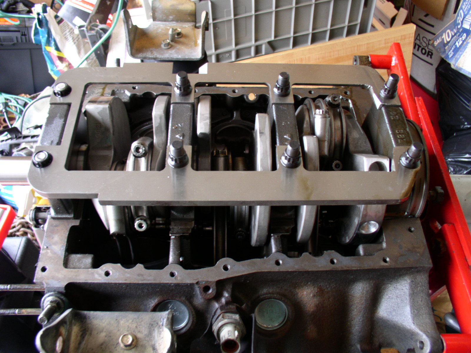 Pictures of the engine assembly with the new crankshaft and other various broken parts